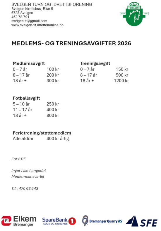 Medlems- og treningsavgifter 2026